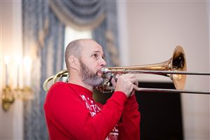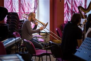 Большого симфонического оркестра им. П. И. Чайковского под управлением Владимира Федосеева, где в 2009 году стал концертмейстером группы тромбонов.