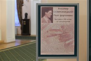 Выставка «Владимир Софроницкий – Поэт фортепиано. К 120-летию со дня рождения» подготовлена Архивом совместно с Музеем А. Н. Скрябина на основе документов Архива и материалов из фонда Музея (фотографии, афиши, концертные программы). Также представлены фотографии из личного архива ученицы В. В. Софроницкого — профессора Московской консерватории О. М. Жуковой.
