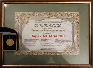 Медаль и Премия также были вручены лучшему выпускнику Московской консерватории — лауреату I премии XIV Международного конкурса им. П. И. Чайковского, виолончелисту Нареку Ахназаряну.