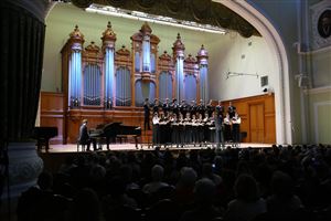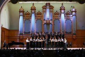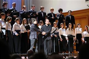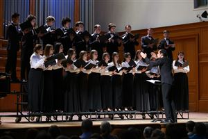По традиции концерт завершился выступлением студенческого коллектива – Молодёжный камерный хор Москвы снова порадовал публику яркой программой, в которую вошли произведения Филиппа Эрсана, Ефрема Подгайца и Исаака Дунаевского.