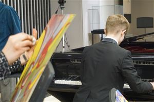 10 марта состоялась творческая встреча музыкантов и художников в рамках студенческого проекта «Музыка кисти». Уже второй сезон на одной сцене встречаются студенты Московской консерватории и художественных ВУЗов Москвы. В соединении насыщенной музыкальной программы и картин, создающихся на глазах у зрителей, уникальность этого проекта.