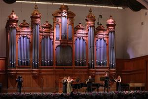 16 июня в Большом зале состоялся праздничный концерт 154-го выпуска Московской консерватории. В обширной камерной программе выступили лучшие студенты исполнительских факультетов, окончившие консерваторию в 2023 году.