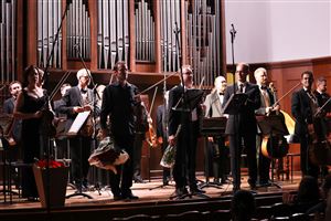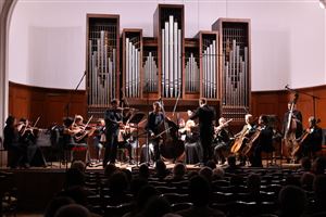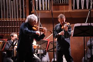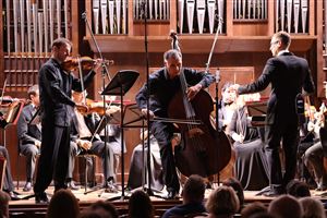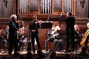 Драматургия программы концерта построена так, чтобы представить самые разные амплуа скрипки — как участницы дуэта, трио, квинтета, в ансамбле с голосом, контрабасом. Ансамбль солистов Госоркестра под управлением Михаила Безносова стал партнером в исполнении концертов Баха и одного из самых популярных классических опусов — пьесы «Наварра» Сарасате для двух скрипок и оркестра.