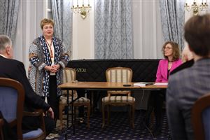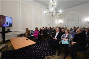 О великом скрипаче и учителе поделились воспоминаниями его ученик, профессор Сергей Кравченко, профессор, музыковед Светлана Сигида. О том, как делались первые описания и каталогизация писем Л.Б. Когана, рассказала декан научно-композиторского факультета, профессор Ирина Скворцова.