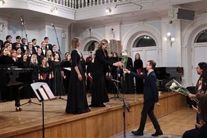 В заключение концерта для слушателей прозвучали две русские народные песни и песня И.О. Дунаевского «Дорогие мои москвичи» в исполнении сводного хора студентов Московской и Казанской консерваторий.