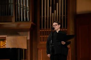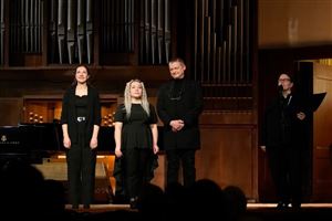 В первом отделении концерта прозвучала «Медитация» для органа Олега Янченко – одно из самых знаменитых сочинений композитора. На сцену вышла органистка Анна Лобковская. В исполнении Анны прозвучали также прелюдия и фуга ре мажор И.С. Баха, антифон цикла «Пятнадцать стихов для праздника Святой Богородицы» и прелюдия из второй симфонии для органа Дюпре.