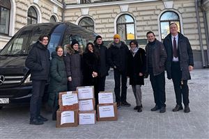 В завершении концерта были вручены подарки для участников Специальной Военной операции, подготовленные Московской консерваторией к Дню Защитника Отечества.