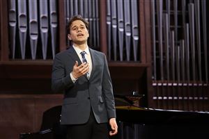 Концерт открылся романсом «Весенние воды» Сергея Рахманинова, переложение для хора А. Андрусенко, в исполнении Сводного хорового ансамбля студентов, хормейстер – Алексей Комаров.