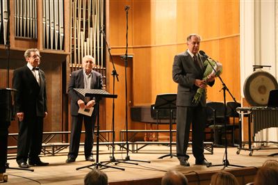 С поздравлением юбиляру выступает ректор Московской консерватории, профессор Александр Сергеевич Соколов.С поздравлением юбиляру выступает ректор Московской консерватории, профессор Александр Сергеевич Соколов.С поздравлением юбиляру выступает ректор Московской консерватории, профессор Александр Сергеевич Соколов.С поздравлением юбиляру выступает Председатель Союза московских композиторов, Заслуженный деятель искусств Российской Федерации Олег Борисович Галахов.С приветственным словом собравшимся выступает юбиляр, Заслуженный деятель искусств России, композитор Александр Павлович Кулыгин.Александр Кулыгин. «Духовный триптих» для смешанного хора, флейты, фортепиано и ударных. Исполняет Филармоническая хоровая капелла «Ярославия», художественный руководитель и дирижер — Владимир Контарев.Александр Кулыгин. «Духовный триптих» для смешанного хора, флейты, фортепиано и ударных. Исполняет Филармоническая хоровая капелла «Ярославия», художественный руководитель и дирижер — Владимир Контарев. Солистка Анастасия Большакова (флейта).Александр Кулыгин. «Духовный триптих» для смешанного хора, флейты, фортепиано и ударных. Исполняет Филармоническая хоровая капелла «Ярославия», художественный руководитель и дирижер — Владимир Контарев.Александр Кулыгин. «Духовный триптих» для смешанного хора, флейты, фортепиано и ударных. Исполняет Филармоническая хоровая капелла «Ярославия», художественный руководитель и дирижер — Владимир Контарев.Заслуженный деятель искусств России, композитор Александр Кулыгин.Александр Кулыгин. «Плаха», сцены из мюзикла-притчи по Ч. Айтматову (автор стихов и либретто Л. Яковлев). Исполняет Московский государственный музыкальный театр п/р Г. Чихачева.Александр Кулыгин. «Плаха», сцены из мюзикла-притчи по Ч. Айтматову (автор стихов и либретто Л. Яковлев). Исполняют солисты Московского государственного музыкального театра п/р Г. Чихачева.Александр Кулыгин. «Плаха», сцены из мюзикла-притчи по Ч. Айтматову (автор стихов и либретто Л. Яковлев). Исполняют солисты Московского государственного музыкального театра п/р Г. Чихачева.Александр Кулыгин. «Плаха», сцены из мюзикла-притчи по Ч. Айтматову (автор стихов и либретто Л. Яковлев). Исполняют солисты Московского государственного музыкального театра п/р Г. Чихачева.Александр Кулыгин. «Плаха», сцены из мюзикла-притчи по Ч. Айтматову (автор стихов и либретто Л. Яковлев). Исполняют солисты Московского государственного музыкального театра п/р Г. Чихачева.Александр Кулыгин. «Плаха», сцены из мюзикла-притчи по Ч. Айтматову (автор стихов и либретто Л. Яковлев). Исполняют солисты Московского государственного музыкального театра п/р Г. Чихачева.Александр Кулыгин. «Плаха», сцены из мюзикла-притчи по Ч. Айтматову (автор стихов и либретто Л. Яковлев). Исполняют солисты Московского государственного музыкального театра п/р Г. Чихачева.Александр Кулыгин. «Плаха», сцены из мюзикла-притчи по Ч. Айтматову (автор стихов и либретто Л. Яковлев). Исполняют солисты Московского государственного музыкального театра п/р Г. Чихачева.Заведующий музыкальной частью Краснознамённого ансамбля им. А.В. Александрова, Заслуженный деятель искусств Российской Федерации Владимир Иванович Лебедев вручает Александру Кулыгину медаль «Генерал-майор Александр Александров».Александ