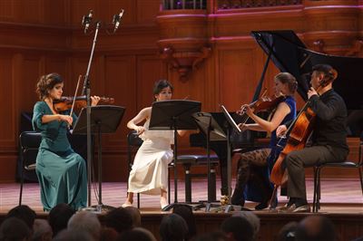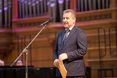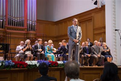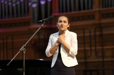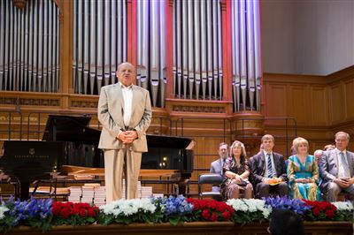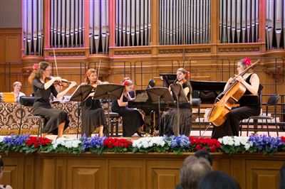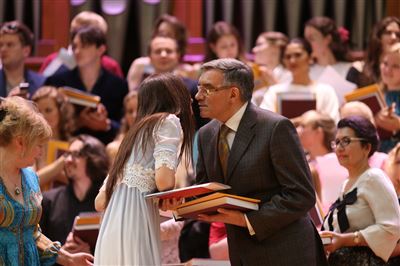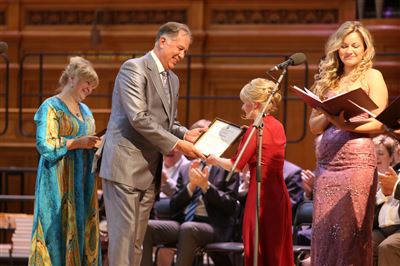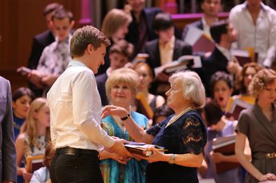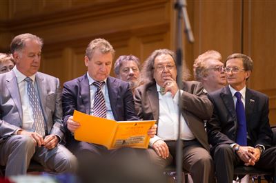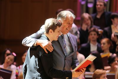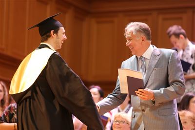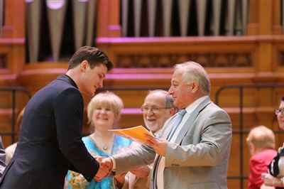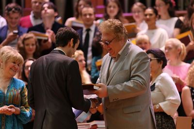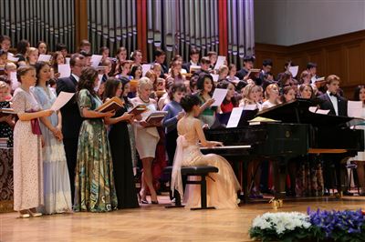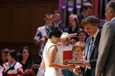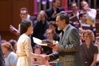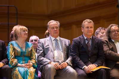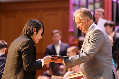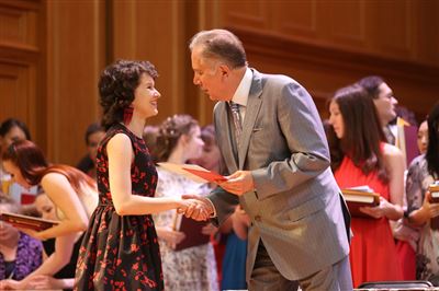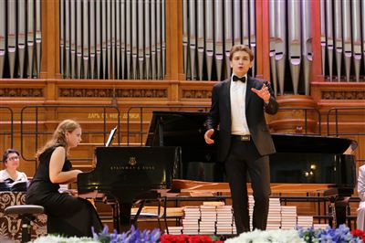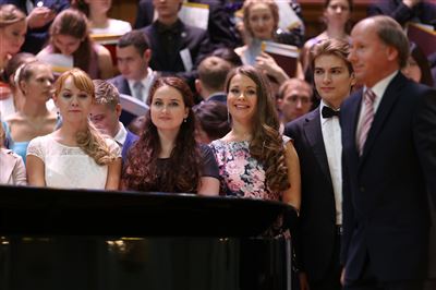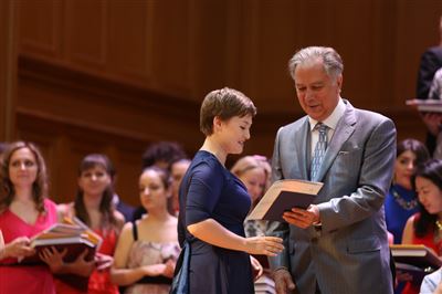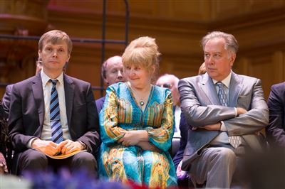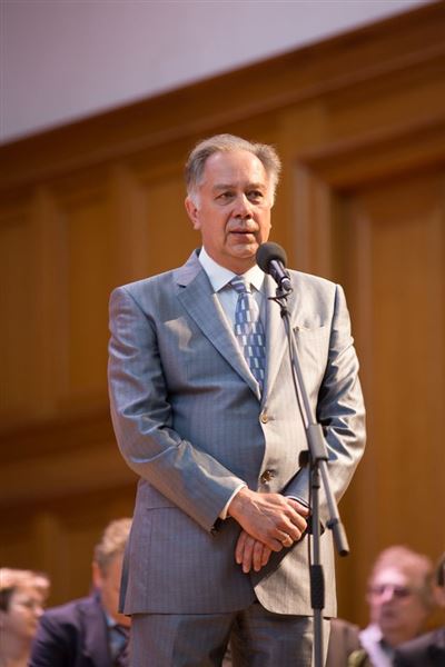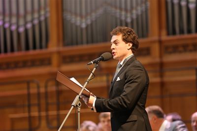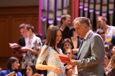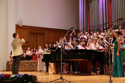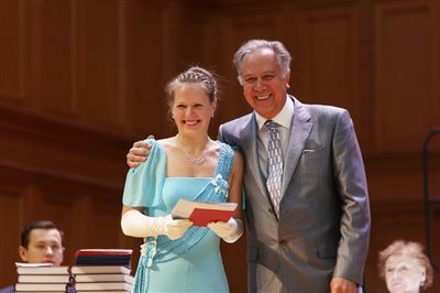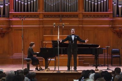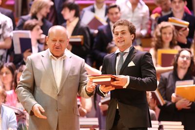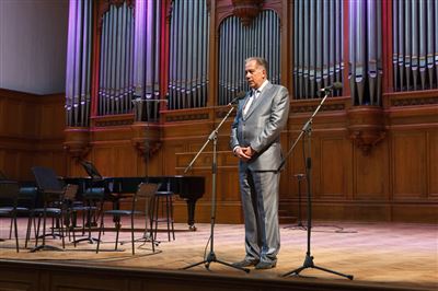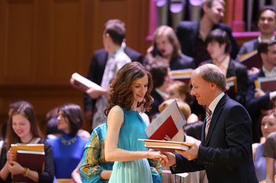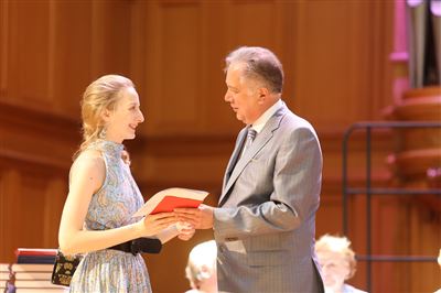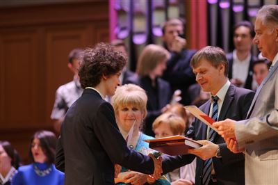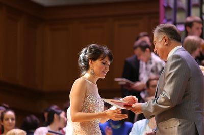 В церемонии вручения дипломов принимает участие Brass-ансамбль Московской консерватории под управлением Ярослава Белякова.Торжественная церемония вручения дипломов 145-му выпуску Московской государственной консерватории им. П.И. Чайковского.Выпускников поздравляет ректор Московской консерватории, профессор Александр Сергеевич Соколов.Выпускников поздравляет ректор Московской консерватории, профессор Александр Сергеевич Соколов.Ведущие церемонии вручения дипломов 145-му выпуску Московской консерватории Яна Межинская и Кирилл Золочевский.Торжественная церемония вручения дипломов 145-му выпуску Московской государственной консерватории им. П.И. Чайковского.С напутствием к выпускникам обращается член Попечительского совета Московской консерватории, 2-й Статс-секретарь — заместитель Министра культуры Российской Федерации Григорий Петрович Ивлиев.Перед выпускниками выступает Заместитель председателя Государственной думы Федерального собрания Российской федерации Николай Владимирович Левичев.Гранадос. Квинтет для фортепиано, двух скрипок, альта и виолончели соль минор, соч. 49. Финал. Исполняют Наталья Покровская (фортепиано), Елизавета Дьякова (скрипка), Вероника Пономарёва (скрипка), Юстина Аполлонская (альт), Анастасия Гудкова (виолончель). Класс профессора Г. С. Ширинской (камерный ансамбль).С поздравительным словом выпускникам обращается профессор кафедры истории зарубежной музыки, декан историко-теоретического факультета Московской консерватории Ирина Васильевна Коженова.На торжественной церемонии вручения дипломов 145-му выпуску Московской государственной консерватории им. П.И. Чайковского.Ференц Лист. Венгерская рапсодия № 9 ми-бемоль мажор «Пештский карнавал». Исполняет Линь Дунфан (класс профессора Ю.С. Слесарева).На торжественной церемонии вручения дипломов 145-му выпуску Московской государственной консерватории им. П.И. Чайковского.На торжественной церемонии вручения дипломов 145-му выпуску Московской государственной консерватории им. П.И. Чайковского.Поздравительное слово декана вокального факультета, профессора Петра Ильича Скусниченко.Русская народная песня «Прощай, радость». Исполняет Андрей Морозов (класс профессора Б.Н. Кудрявцева). Партия фортепиано Наталья Покровская.От имени выпускников выступает Анна Цыбулева (фортепианный факультет), класс профессора Л.В. Рощиной.Ведущий церемонии вручения дипломов 145-му выпуску Московской консерватории Кирилл Золочевский.От иностранных учащихся выступает Элли Папагригориу (оркестровый факультет), класс профессора А.А. Мельникова.Ректор Московской консерватории, профессор Александр Сергеевич Соколов вручает сертификаты «Лучший выпускник года - 2014» ассоциации выпускников Московской консерватории «Alma Mater».Ректор Московской консерватории, профессор Александр Сергеевич Соколов вручает сертификаты «Лучший выпускник года - 2014» от ассоциации выпускников Московской консерватории «Alma Mater».Выступает ректор Московской консерватории, профессор Александр Сергеевич Соколов.Торжественная церемония вручения дипломов 145-му выпуску Московской государственной консерватории им. П.И. Чайковского.Торжественная церемония вручения дипломов 145-му выпуску Московской государственной консерватории им. П.И. Чайковского.Торжественная церемония вручения диплом