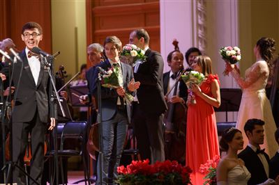 В Большом зале консерватории прошло торжественное закрытие II Музыкального фестиваля студентов и аспирантов Московской консерватории «Grata Novitas», а также гала-концерт участников фестиваля.Бизе. Увертюра к опере «Кармен». Исполняет симфонический оркестр оперного театра Московской консерватории. Дирижер – художественный руководитель оркестра, Заслуженный деятель искусств России, профессор Александр Александрович Петухов.Бизе. Хабанера из оперы «Кармен». Солистка Анна Викторова.Россини. Каватина Фигаро из оперы «Севильский цирюльник». Солист – Максим Перебейнос.Россини. Каватина Фигаро из оперы «Севильский цирюльник». Солист – Максим Перебейнос.Россини. Интродукция, тема и вариации для кларнета с оркестром. Солист Марат Аванесян.Россини. Интродукция, тема и вариации для кларнета с оркестром. Солист Марат Аванесян.Гуно. Вальс Джульетты из оперы «Ромео и Джульетта». Солистка Татьяна Иванова.Гуно. Вальс Джульетты из оперы «Ромео и Джульетта». Солистка Татьяна Иванова.Сен-Санс. Ария Далилы из оперы «Самсон и Далила». Солистка Лидия Жоголева.Сен-Санс. Интродукция и рондо-каприччиозо для скрипки с оркестром, соч. 28. Солист Давид Ардуханян.Верди. Ария Виолетты из оперы «Травиата». Солистка Дарья Кудряшова.Пуччини. Ария Рудольфа из оперы «Богема». Солист Кирилл Золочевский.Пуччини. Ария Рудольфа из оперы «Богема». Солист Кирилл Золочевский.Пуччини. Ария Мими из оперы «Богема». Солистка Дарья Давыдова.Пуччини. Ария Мими из оперы «Богема». Солистка Дарья Давыдова.Пуччини. Ария Мими из оперы «Богема». Солистка Дарья Давыдова.В Большом зале консерватории прошло торжественное закрытие II Музыкального фестиваля студентов и аспирантов Московской консерватории «Grata Novitas», а также гала-концерт участников фестиваля.Чайковский. Ноктюрн, соч. 19 № 4 /переложение для виолончели с оркестром/. Солистка – Анна Кошкина.Верди. Болеро Елены из оперы «Сицилийская вечерня». Солистка – Оксана Лесничая.Верди. Болеро Елены из оперы «Сицилийская вечерня». Солистка – Оксана Лесничая.Пуччини. Ария Лауретты из оперы «Джанни Скикки». Солистка – Екатерина Ясинская.Пуччини. Ария Джанни Скикки из оперы «Джанни Скикки». Солист Константин Сучков.Чайковский. Ария Роберта из оперы «Иоланта». Солист Константин Сучков.В Большом зале консерватории прошло торжественное закрытие II Музыкального фестиваля студентов и аспирантов Московской консерватории «Grata Novitas», а также гала-концерт участников фестиваля.В Большом зале консерватории прошло торжественное закрытие II Музыкального фестиваля студентов и аспирантов Московской консерватории «Grata Novitas», а также гала-концерт участников фестиваля.В Большом зале консерватории прошло торжественное закрытие II Музыкального фестиваля студентов и аспирантов Московской консерватории «Grata Novitas», а также гала-концерт участников фестиваля.В Большом зале консерватории прошло торжественное закрытие II Музыкального фестиваля студентов и аспирантов Московской консерватории «Grata Novitas», а также гала-концерт участников фестиваля. В Большом зале консерватории прошло торжественное закрытие II Музыкального фестиваля студентов и аспирантов Московской консерватории «Grata Novitas», а также гала-концерт участников фестиваля.Художественный руководитель II Музыкального фестиваля студентов и аспирантов Московской консерватории «Grata Novitas»
