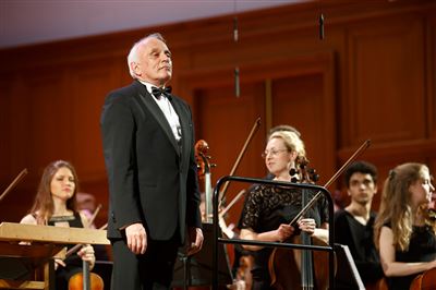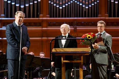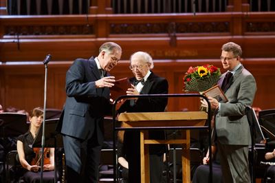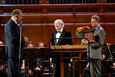 На сцене Большого зала Московской консерватории Народный артист СССР, Лауреат Ленинской премии, Герой Социалистического труда, Лауреат Государственной премии Российской Федерации, Кавалер Ордена Восходящего Солнца, Офицер Ордена «Почётного Легиона» (Франция, 2003), Кавалер Орденов «Кирилла и Мефодия», «За заслуги перед Отечеством» III степени. Почётный член Шведской королевской академии, Почётный академик Английской Королевской академии музыки, профессор Геннадий Николаевич Рождественский.На сцене Большого зала Московской консерватории Народный артист СССР, Лауреат Ленинской премии, Герой Социалистического труда, Лауреат Государственной премии Российской Федерации, Кавалер Ордена Восходящего Солнца, Офицер Ордена «Почётного Легиона» (Франция, 2003), Кавалер Орденов «Кирилла и Мефодия», «За заслуги перед Отечеством» III степени. Почётный член Шведской королевской академии, Почётный академик Английской Королевской академии музыки, профессор Геннадий Николаевич Рождественский.Выступает ректор Московской консерватории, профессор Александр Сергеевич Соколов.Ректор Московской консерватории, профессор Александр Сергеевич Соколов вручает Народному артисту СССР, профессору Геннадию Николаевичу Рождественскому памятный наградной знак «150 лет Московской консерватории».Ректор Московской консерватории, профессор Александр Сергеевич Соколов вручает Народному артисту СССР, профессору Геннадию Николаевичу Рождественскому памятный наградной знак «150 лет Московской консерватории».Ректор Московской консерватории, профессор Александр Сергеевич Соколов вручает Народному артисту СССР, профессору Геннадию Николаевичу Рождественскому памятный наградной знак «150 лет Московской консерватории».На сцене Большого зала Московской консерватории Народный артист СССР, Лауреат Ленинской премии, Герой Социалистического труда, Лауреат Государственной премии Российской Федерации, Кавалер Ордена Восходящего Солнца, Офицер Ордена «Почётного Легиона» (Франция, 2003), Кавалер Орденов «Кирилла и Мефодия», «За заслуги перед Отечеством» III степени. Почётный член Шведской королевской академии, Почётный академик Английской Королевской академии музыки, профессор Геннадий Николаевич Рождественский.Выступает Народный артист СССР, профессор Геннадий Николаевич Рождественский.Выступает Народный артист СССР, профессор Геннадий Николаевич Рождественский.На сцене Концертный симфонический оркестр Московской консерватории, дирижёр Вячеслав Валеев.На сцене Концертный симфонический оркестр Московской консерватории, дирижёр Вячеслав Валеев.На сцене Концертный симфонический оркестр Московской консерватории, дирижёр Вячеслав Валеев.На сцене Концертный симфонический оркестр Московской консерватории, дирижёр Вячеслав Валеев.На сцене Концертный симфонический оркестр Московской консерватории, Художественный руководитель и дирижёр Анатолий Левин.На сцене Концертный симфонический оркестр Московской консерватории, Художественный руководитель и дирижёр Анатолий Левин.На сцене Концертный симфонический оркестр Московской консерватории, Художественный руководитель и дирижёр Анатолий Левин.На сцене Концертный симфонический оркестр Московской консерватории, Художественный руководитель и дирижёр Анатолий Левин.На сцене Концертный 