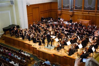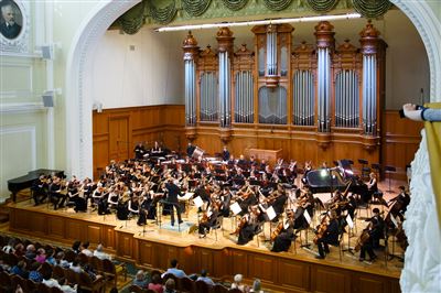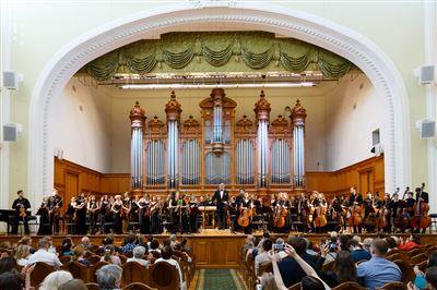 Гид в музыкальном путешествии — пианист и композитор Иван Соколов.Аарон Копленд. «Весна в Аппалачах». Сюита из музыки балета (фрагмент). Исполняет Симфонический оркестр студентов Московской консерватории. Дирижёр — художественный руководитель оркестра Анатолий Левин.На сцене дирижёр и художественный руководитель Симфонического оркестра студентов Московской консерватории Анатолий Левин.Гид в музыкальном путешествии — пианист и композитор Иван Соколов.Абонемент № 5. «Вокруг света». Музыкальное путешествие для всей семьи в Большом зале консерватории.На сцене Симфонический оркестр студентов Московской консерватории. Дирижёр — художественный руководитель оркестра Анатолий Левин.Абонемент № 5. «Вокруг света». Музыкальное путешествие для всей семьи в Большом зале консерватории.На сцене Симфонический оркестр студентов Московской консерватории. Леонард Бернстайн. «Turkey Trot» из Дивертисмента для оркестра. Исполняет Симфонический оркестр студентов Московской консерватории, художественный руководитель и дирижёр Анатолий Левин.Леонард Бернстайн. «Turkey Trot» из Дивертисмента для оркестра. Исполняет Симфонический оркестр студентов Московской консерватории, художественный руководитель и дирижёр Анатолий Левин.На сцене Симфонический оркестр студентов Московской консерватории. Дирижёр — художественный руководитель оркестра Анатолий Левин.Роджерс — Хаммерстайн. Фантазия на темы из мюзикла «Звуки музыки». Исполняет Симфонический оркестр студентов Московской консерватории, художественный руководитель и дирижёр Анатолий Левин.Роджерс — Хаммерстайн. Фантазия на темы из мюзикла «Звуки музыки». Исполняет Симфонический оркестр студентов Московской консерватории, художественный руководитель и дирижёр Анатолий Левин.На сцене Симфонический оркестр студентов Московской консерватории. Дирижёр — художественный руководитель оркестра Анатолий Левин.На сцене дирижёр и художественный руководитель Симфонического оркестра студентов Московской консерватории Анатолий Левин.На сцене Симфонический оркестр студентов Московской консерватории. Гид в музыкальном путешествии, пианист и композитор Иван Соколов, приглашает юных зрителей и их родителей в Южную Америку.Эйтор Вила-Лобос. Ария из Бразильской бахианы №5, ст. P. Koppea, W 389. Исполняет Исполняет Симфонический оркестр студентов Московской консерватории, художественный руководитель и дирижёр Анатолий Левин. Солистка Анастасия Джилас.Эйтор Вила-Лобос. Ария из Бразильской бахианы №5, ст. P. Koppea, W 389. Исполняет Исполняет Симфонический оркестр студентов Московской консерватории, художественный руководитель и дирижёр Анатолий Левин. Солистка Анастасия Джилас.Абонемент № 5. «Вокруг света». Музыкальное путешествие для всей семьи в Большом зале консерватории.