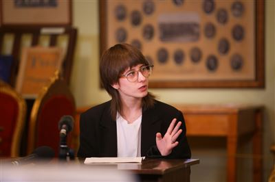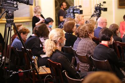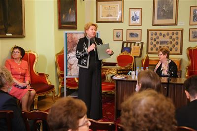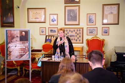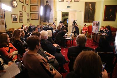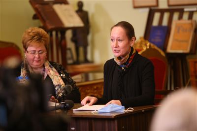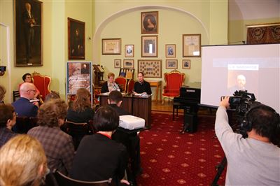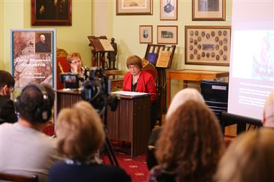 В Овальном зале консерваторского Музея Рубинштейна прошёл Круглый стол к 180-летнему юбилею со дня рождения русского предпринимателя и мецената, покровителя искусств Саввы Ивановича МамонтоваДекан научно-композиторского факультета, зав. кафедрой истории русской музыки Московской консерватории, доктор искусствоведения, профессор Ирина Арнольдовна Скворцова читает доклад на тему «Мамонтовская антреприза как феномен художественной культуры рубежа ХIХ-ХХ веков»В Овальном зале консерваторского Музея Рубинштейна прошёл Круглый стол к 180-летнему юбилею со дня рождения русского предпринимателя и мецената, покровителя искусств Саввы Ивановича МамонтоваКруглый стол к 180-летнему юбилею со дня рождения русского предпринимателя и мецената, покровителя искусств Саввы Ивановича МамонтоваКруглый стол к 180-летнему юбилею со дня рождения русского предпринимателя и мецената, покровителя искусств Саввы Ивановича МамонтоваЭлеонора Викторовна Пастон, главный научный сотрудник отдела живописи второй половины ХIХ – начала ХХ веков, доктор искусствоведенияКруглый стол к 180-летнему юбилею со дня рождения Саввы Ивановича МамонтоваКруглый стол к 180-летнему юбилею со дня рождения Саввы Ивановича МамонтоваНа экране иллюстрация к докладу Э. В. ПастонКруглый стол к 180-летнему юбилею со дня рождения Саввы Ивановича МамонтоваЕлена Евгеньевна Потяркина, кандидат искусствоведения, доцент кафедры Истории русской музыки Московской консерватории читает доклад на тему «С.И. Мамонтов – человек эпохи модерн»Круглый стол к 180-летнему юбилею со дня рождения русского предпринимателя и мецената, покровителя искусств Саввы Ивановича МамонтоваТелевидение Московской государственной консерватории имени П.И. Чайковского ведёт трансляцию Круглого стола к 180-летнему юбилею Саввы Ивановича МамонтоваКруглый стол к 180-летнему юбилею со дня рождения русского предпринимателя и мецената, покровителя искусств Саввы Ивановича МамонтоваКруглый стол к 180-летнему юбилею со дня рождения русского предпринимателя и мецената, покровителя искусств Саввы Ивановича Мамонтова в Овальном зале Музея РубинштейнаНина Давидовна Свиридовская, кандидат искусствоведения, доцент кафедры Истории русской музыки Московской консерватории выступает с докладом на тему «Мамонтов и Рахманинов: к истории взаимоотношений»Евфросиния Николаевна Чернышёва, студентка РГГУ, выступает с сообщением на тему «Игры в семейной традиции Мамонтовых»Иллюстрация к сообщению Е. Н. Чернышёвой на экранеВыступает Николай Сергеевич Чернышёв, архитектор-реставратор, член-корреспондент Академии архитектурного наследия, член Союза художников России, потомок Саввы МамонтоваИллюстрация к выступлению Н. С. Чернышёва – фотографии из семейного архиваБогомолова Анна Игоревна, старший научный сотрудник, хранитель отдела рукописей и редкой книги Музея-усадьбы «Абрамцево» выступает с докладом «Роль музыки в становлении личности С. И. Мамонтова и формирование его художественного кружка»На экране архивное фото из Абрамцево – иллюстрация к докладу А. И. БогомоловойБогомолова Анна Игоревна, старший научный сотрудник, хранитель отдела рукописей и редкой книги Музея-усадьбы «Абрамцево»Трушкова Раиса Николаевна, заведующая Архивом Московской консерватории выступает с докладом "Московская консерва