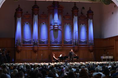 155 выпуск Московской консерватории. Перед концертом выпускников исполнительских факультетов в Большом зале155 выпуск Московской консерватории. Перед концертом выпускников в Большом зале155 выпуск Московской консерватории. Перед концертом выпускников в Большом залеПриветственное слово перед концертом выпускников консерватории 2024-го года — ректор Московской консерватории, профессор Александр СоколовГ. Пьерне. Прелюдия для органа, соч. 29, №1. Исполняет Иван Зиновьев (орган)155 выпуск Московской консерватории. Концерт выпускников в Большом залеНа сцене Большого зала Иван Зиновьев (орган)М. Мусоргский. Песня Валаама из оперы «Борис Годунов». Исполняет Даниил Акимов (бас). Партия фортепиано Алина Смирнова155 выпуск Московской консерватории. Концерт выпускников в Большом залеДаниил Акимов (бас)155 выпуск Московской консерватории. Концерт выпускников в Большом залеФ. Бридж. Квинтет для фортепиано, двух скрипок, альта и виолончели ре минор. III часть. Исполняют Валентина Сушко (скрипка), Татьяна Филоненко (альт), Эмилия Мантай (фортепиано), Татьяна Крячкова (скрипка), Анна Михайлова (виолончель)На сцене Большого зала (слева направо): Валентина Сушко (скрипка), Татьяна Филоненко (альт), Эмилия Мантай (фортепиано), Татьяна Крячкова (скрипка), Анна Михайлова (виолончель)На сцене Большого зала (слева направо): Валентина Сушко (скрипка), Татьяна Филоненко (альт), Эмилия Мантай (фортепиано), Татьяна Крячкова (скрипка), Анна Михайлова (виолончель)Сёко Маруо (скрипка)А. Скрябин. Соната №2 соль-диез минор, соч. 19. Исполняет Кристина Модич (фортепиано)Кристина Модич (фортепиано)Иван Мовчан (кларнет)Александра Полякова (фортепиано) и Иван Мовчан (кларнет) на сцене Большого зала155 выпуск Московской консерватории. Концерт выпускников исполнительских факультетов в Большом зале155 выпуск Московской консерватории. Концерт выпускников в Большом залеД. Кабалевский. Рондо для скрипки и фортепиано, соч. 69. Исполняет Виктория Нам-Ли (скрипка). Партия фортепиано — Анна Рудакова