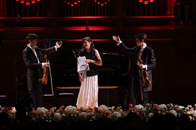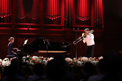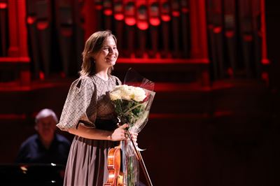 Виктория Нам-Ли (скрипка), Анна Рудакова (фортепиано)На сцене Большого зала Дарья Брусова (сопрано). Партия фортепиано — Мария ШкалевичВ.А. Моцарт. Ария Царицы ночи из оперы «Волшебная флейта». Исполняет Дарья Брусова (сопрано)155 выпуск Московской консерватории. Концерт выпускников в Большом залеС. Рахманинов. Элегия, соч. 3 №1. Исполняет Максимилиан Катенин (фагот). Партия фортепиано — Ольга Бер155 выпуск Московской консерватории. Концерт выпускников исполнительских факультетов в Большом залеОльга Бер (фортепиано), Максимилиан Катенин (фагот) на сцене Большого залаДаниил Зимин (виолончель)155 выпуск Московской консерватории. Концерт выпускников в Большом залеНа сцене Большого зала Даниил Зимин (виолончель)Ж.-Ф. Ребель. Трио-соната №4 ми минор. II, III части. Исполняют Ульяна Живицкая (флейта), Анастасия Соколова (клавесин), Дарья Криницына (скрипка), Анастасия Завражнова (виолончель)На сцене Большого зала (слева направо): Ульяна Живицкая (флейта), Дарья Криницына (скрипка), Анастасия Соколова (клавесин), Анастасия Завражнова (виолончель)Э. Морриконе. Попури на музыку к кинофильмам. Исполняют Иван Буланкин (труба, IV курс), Глеб Верещак (труба, III курс), Сергей Калинин (валторна), Нестор Гусев (тромбон), Михаил Роговой (туба)Н. Живкович. «Trio per Uno». I часть. Исполняют Павел Бессонов, Сергей Стефко, Давид Киклевич (ударные)Э. Боцца. Прелюдия и Аллегро. Исполняет Далер Ташниязов (тромбон). Партия фортепиано — Юлия ШироковаДалер Ташниязов (тромбон)Алина Понарьина (фортепиано)Юань Сай (тенор)На сцене Большого зала Юань Сай (тенор)На сцене Большого зала Юань Сай (тенор). Партия фортепиано — Юлия МусаеваС. Прокофьев. Сцена прощания из музыки к балету «Ромео и Джульета» (обработка Б. Борисовского). Исполняет Надежда Морозова (альт). Партия фортепиано — Ирина ТагиеваНадежда Морозова (альт)На сцене Большого зала Надежда Морозова (альт)155 выпуск Московской консерватории. Концерт выпускников в Большом залеНа сцене Большого зала (слева направо): Сёко Маруо (скрипка), Серафим Герасимов (альт), Арсений Мингалёв (виолончель), Татьяна Филоненко (альт), Виктория Нам-Ли (скрипка)На сцене Большого зала (слева направо): Сёко Маруо (скрипка), Серафим Герасимов (альт), Арсений Мингалёв (виолончель), Татьяна Филоненко (альт), Виктория Нам-Ли (скрипка)К. Пендерецкий. Концертный дуэт для скрипки и контрабаса. Исполняют Василиса Хаддад (скрипка, выпуск 2019 г.), Наталья Цурко (контрабас)На сцене Большого зала Василиса Хаддад (скрипка), Наталья Цурко (контрабас)А. Клутхардт. Квинтет для флейты, гобоя, кларнета, валторны и фагота. Исполняют Екатерина Суханова (флейта), Екатерина Башкирцева (гобой), Иван Мовчан (кларнет), Никита Моисеев (валторна), Екатерина Пронина (фагот)Полина Шабунина (сопрано)Ш. Гуно. Ария Джульетты из оперы «Ромео и Джульетта». Исполняет Полина Шабунина (сопрано). Партия фортепиано — Карина Погосбекова155 выпуск Московской консерватории. Концерт выпускников в Большом залеНа сцене Большого зала Полина Шабунина (сопрано). Партия фортепиано — Карина ПогосбековаНа сцене Большого зала Карина Погосбекова (фортепиано), Полина Шабунина (сопрано)Р. Ислямов. «Рассвет» из цикла «Три романса», соч. 7 №3. Исполняет Равиль Ислямов (скрипка). Партия фортепиано — Тимофей ВладимировНа сцене Большого зала Равиль Ислямов (скрипка). Партия фортепиано — Тимофей ВладимировИ. Фролов. Дивертисме