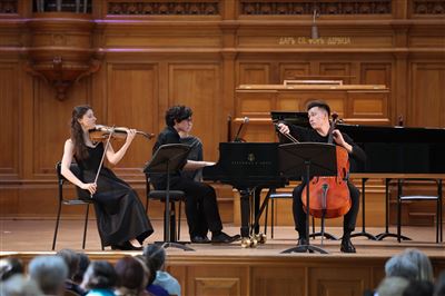 Лучшие выпускники российских творческих вузов 2024 г. Сводный концерт направления «Музыкальное искусство» на сцене Большого залаМ. Равель – Трио для фортепиано, скрипки и виолончели ля минор, М 67. II часть. Pantoum. Assez vif. Исполняет Трио в составе: Алихан Кундухов (фортепиано), Агаша Григорьева (скрипка), Антон Тхай (виолончель), класс профессора К.А. Маслюка, МГК имени П.И. Чайковского