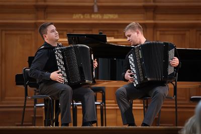 Ю. Романов – «Воронежские наигрыши». Исполняет Дуэт в составе: Геннадий Лямин (баян), Андрей Зязин (баян), класс доцента В.В. Пеунова, ННГК имени М.И. Глинки Дмитрий Березняк (фортепиано), класс профессора Е.И. Кузнецовой, МГК имени П.И. Чайковского