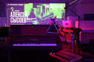 IV Мультимедийный фестиваль современной музыки «Биомеханика». Арт-пространство «Артемьев»IV Мультимедийный фестиваль современной музыки «Биомеханика». Арт-пространство «Артемьев»Вступительное слово к концерту и видеотрансляции — креативный продюсер фестиваля «Биомеханика» Ирина СевастьяноваВ программе: Алексей Сысоев. «Present Continuous» для 3 музыкантов, электронных треков, синусоид и 8 электромеханических реле. Мировая премьераФеодосия Миронова (фортепиано)Феодосия Миронова (фортепиано), Филипп Фитин (перкуссия), Анна Рудакова (челеста). Арт-пространство «Артемьев»На планшете — партитура сочинения Алексея Сысоева «Present Continuous» для 3 музыкантов, электронных треков, синусоид и 8 электромеханических релеФилипп Фитин (перкуссия)Анна РудаковаФеодосия Миронова (фортепиано), Филипп Фитин (перкуссия)IV Мультимедийный фестиваль современной музыки «Биомеханика». Арт-пространство «Артемьев»В программе: Алексей Сысоев. «Present Continuous» для 3 музыкантов, электронных треков, синусоид и 8 электромеханических реле. Мировая премьераФилипп Фитин (перкуссия)Анна Рудакова (челеста)Феодосия Миронова (фортепиано), Анна Рудакова (челеста), Филипп Фитин (перкуссия). Арт-пространство «Артемьев»IV Мультимедийный фестиваль современной музыки «Биомеханика». Арт-пространство «Артемьев»В программе: Алексей Сысоев. «Present Continuous» для 3 музыкантов, электронных треков, синусоид и 8 электромеханических реле. Мировая премьераФилипп Фитин (перкуссия)Феодосия Миронова (фортепиано), Анна Рудакова (челеста), Филипп Фитин (перкуссия)Паблик-ток с композитором Алексеем Сысоевым после концерта. Модератор: Антон СветличныйРассказывает композитор Алексей СысоевКонцерт-презентация композитора Алексея Сысоева. Арт-пространство «Артемьев»Вопрос композитора Владимира ГорлинскогоКомпозитор Алексей Сысоев отвечает на вопросы слушателейIV Мультимедийный фестиваль современной музыки «Биомеханика». Арт-пространство «Артемьев»Рассказывает композитор Алексей СысоевРассказывает композитор Алексей Сысоев. Модератор паблик-ток: Антон Светличный